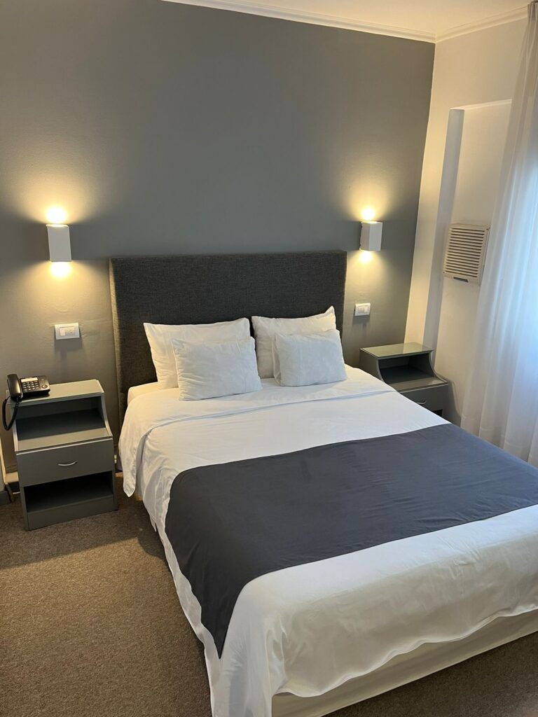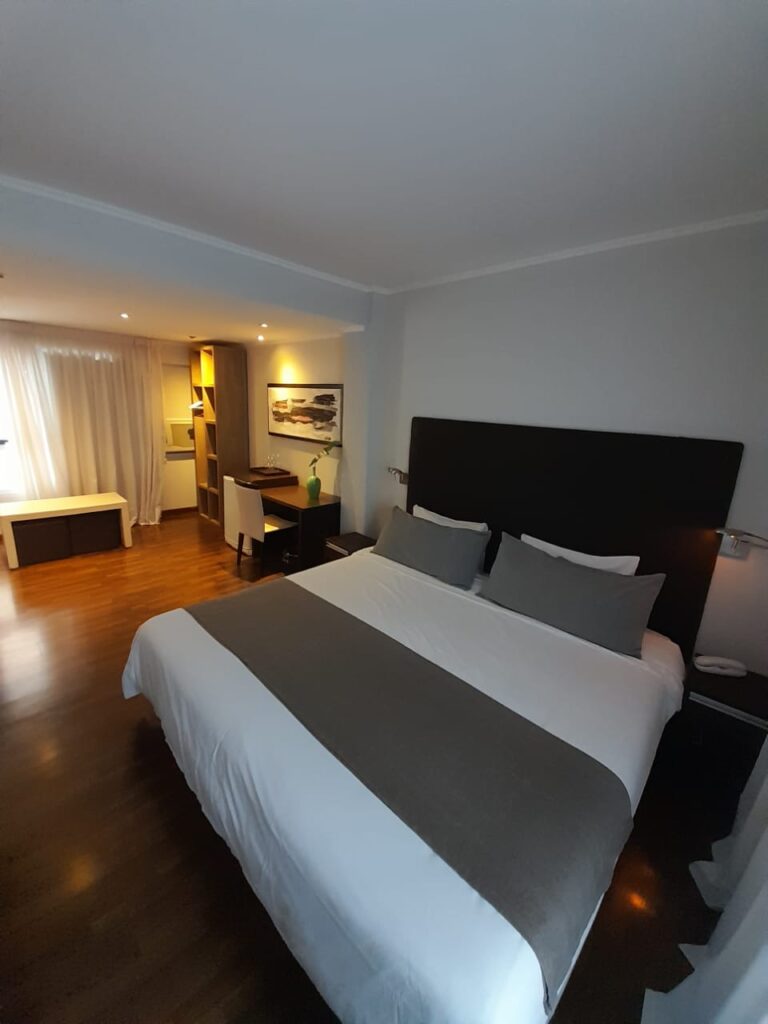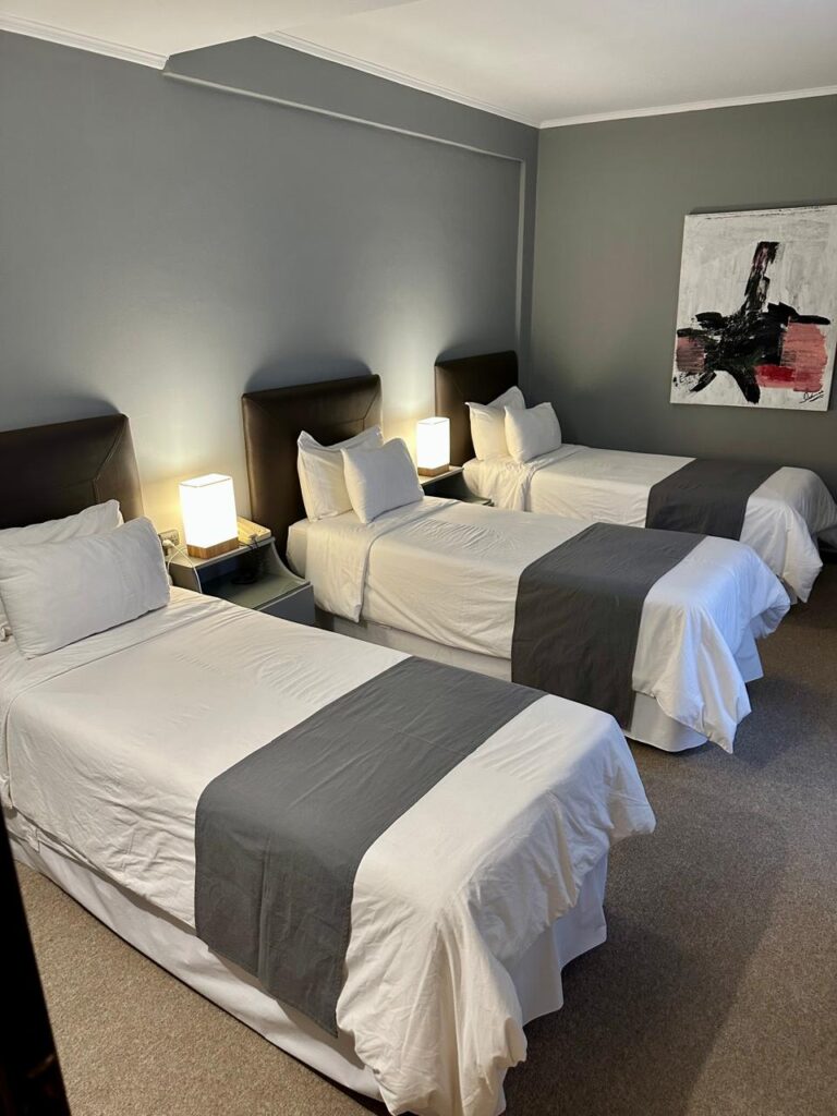 Habitación modernosa, ideal para parejas que buscan pasar una estadía romántica o para personas que viajan solas y quieren asegurarse un descanso de lujo. Cuenta con una cómoda Cama King, ropa de cama blanca impecable, Smart TV 50″, escritorio, caja de seguridad, aire acondicionado, wifi, baño con ducha y secador de pelo.